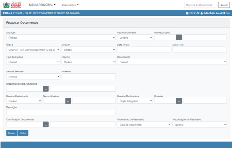3.9 Pesquisar Documento filtros