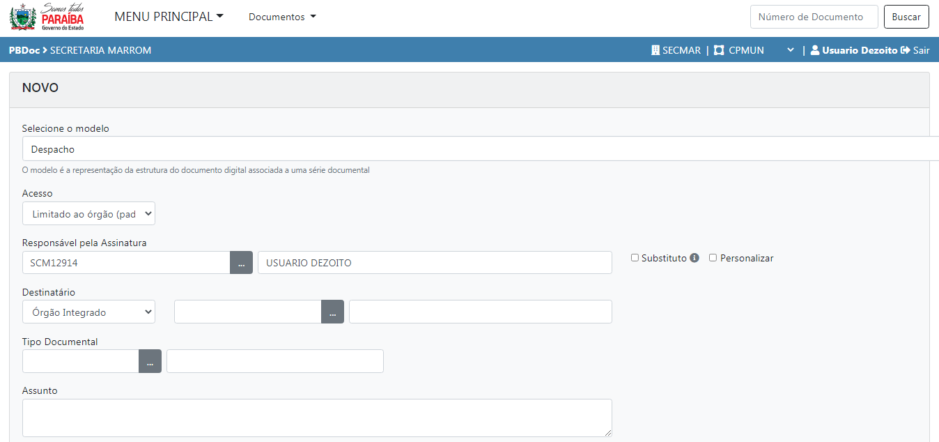 2.2 Criação de documento